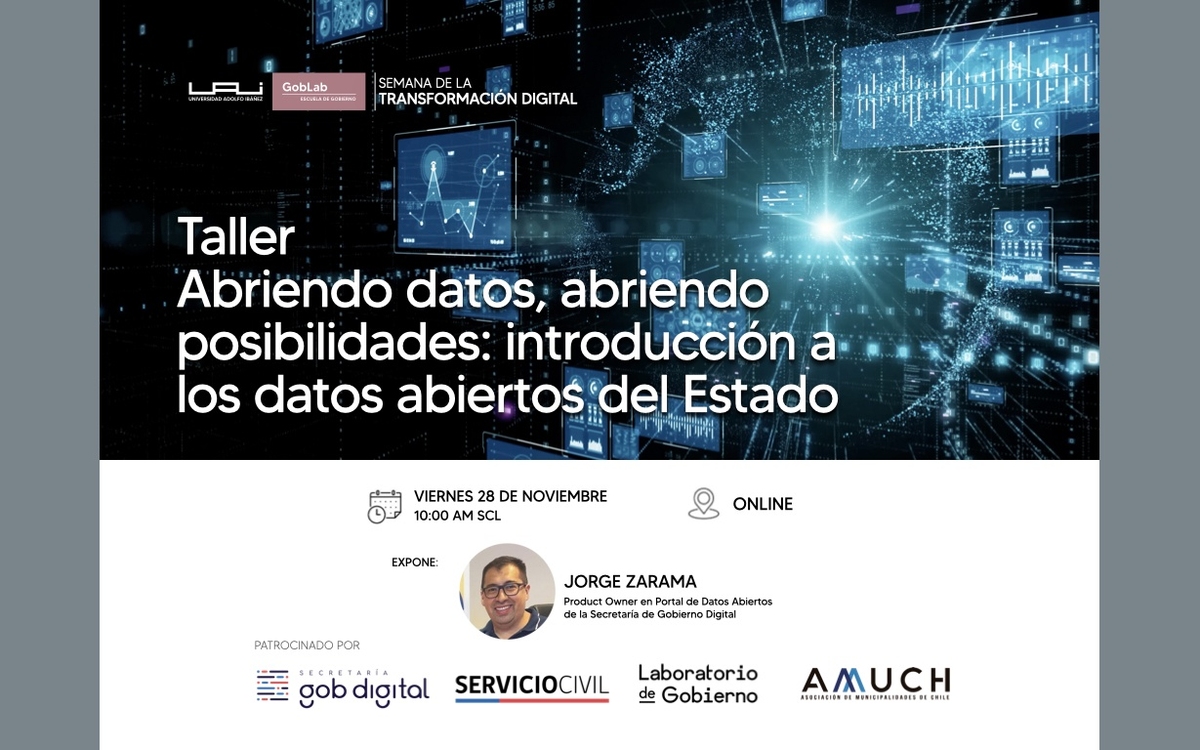 Los datos abiertos se han convertido en una herramienta clave para fomentar la innovación, la colaboración y la rendición de cuentas. Este taller introductorio, realizado por Jorge Zarama, Product Owner en Portal de Datos Abiertos de la Secretaría de Gobierno Digital, invita a personas interesadas en conocer y aprovechar los datos públicos, a explorar el ecosistema de datos abiertos del Estado de Chile y comprender cómo estos pueden contribuir a una gestión más eficiente y participativa. Durante la sesión se abordarán los principios básicos de los datos abiertos, el funcionamiento de la plataforma de datos abiertos datos.gob.cl, y ejemplos de iniciativas que transforman la información pública.