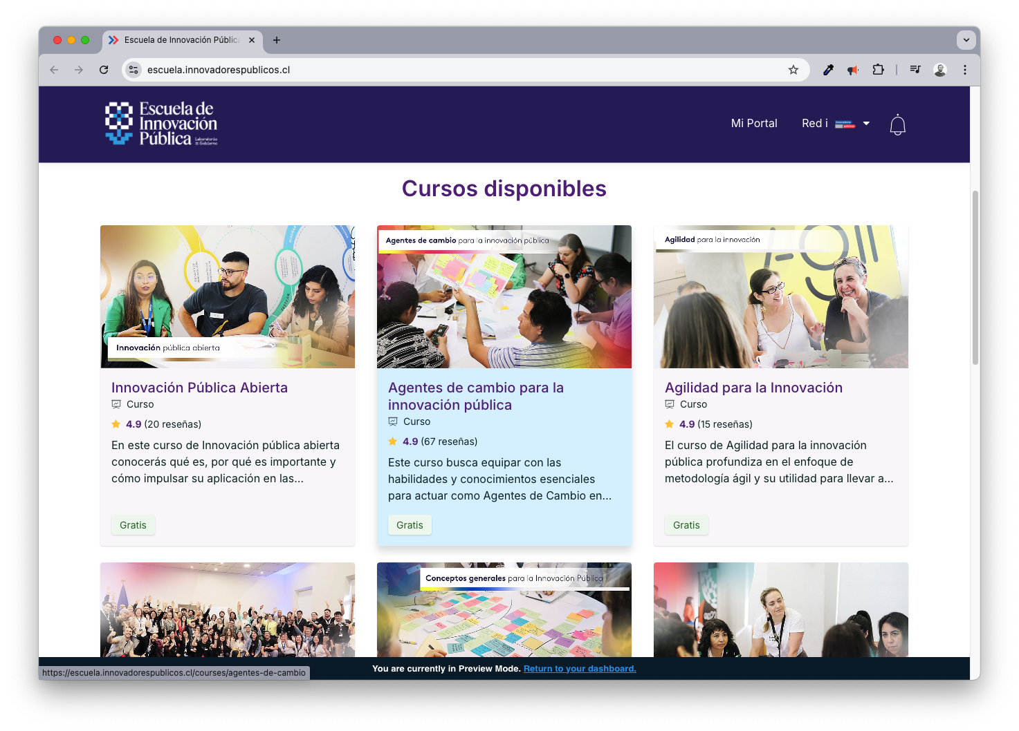La Escuela de Innovación Pública es un espacio de formación virtual creado para apoyar el desarrollo de competencias en innovación pública y transformación del Estado. A través de esta plataforma, los participantes tienen acceso a 11 cursos que incluyen 50 videoclases, en las que se abordan temas clave como las fases de un proyecto de innovación, gestión del cambio, facilitación, capacidades para innovar, innovación pública abierta, entre otros. Los cursos están diseñados para ser asincrónicos, lo que permite a los participantes avanzar a su propio ritmo y según su disponibilidad. Además, los contenidos son prácticos y están alineados con las prioridades de modernización del Estado, brindando herramientas que pueden aplicarse directamente en el entorno institucional. Al finalizar cada curso, los participantes reciben un certificado que respalda su formación.
